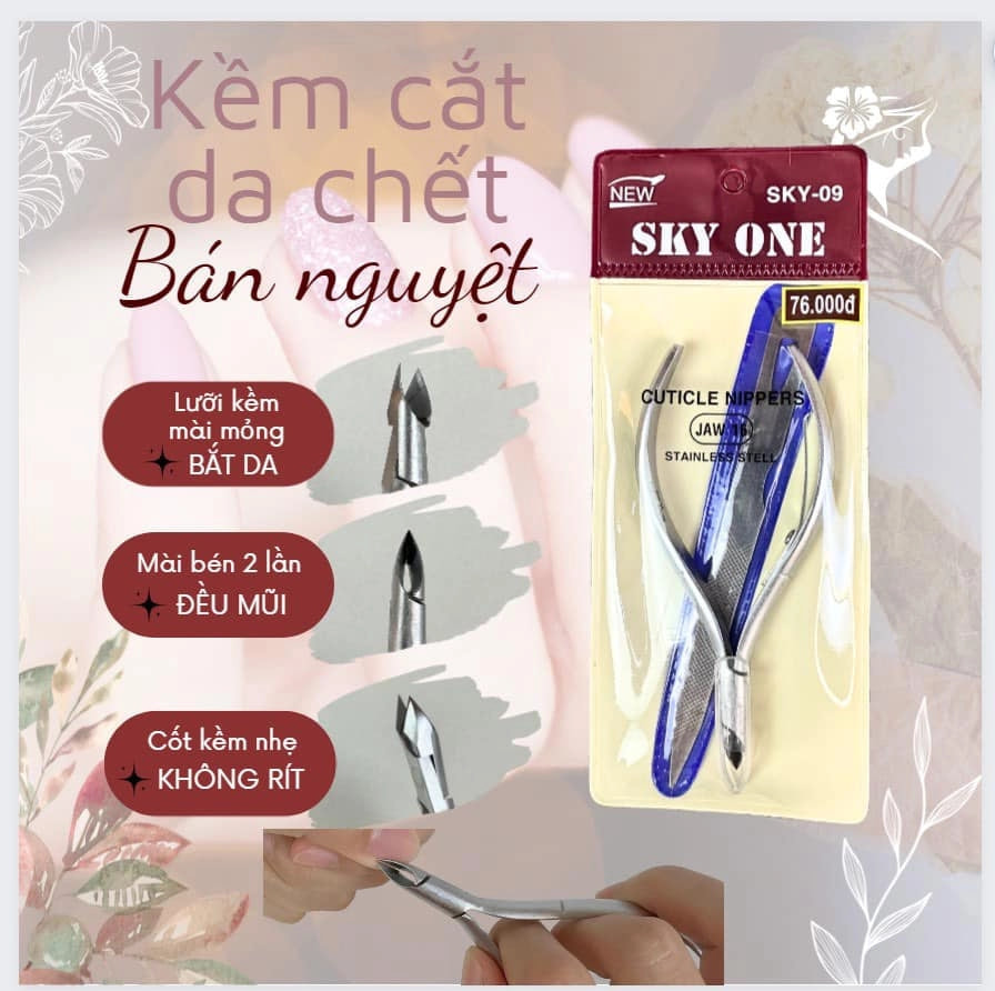 Đây là một trong những dụng cụ quan trọng nhất trong bộ đồ nghề làm nails. Kềm cắt da được sử dụng để loại bỏ phần da thừa xung quanh móng, giúp móng trông gọn gàng và sạch sẽ hơn. Để đảm bảo độ bền và an toàn khi sử dụng, kềm cắt da nên được làm từ chất liệu thép không gỉ. Ngoài ra, việc vệ sinh và bảo quản kềm đúng cách cũng rất quan trọng để tránh nhiễm khuẩn.