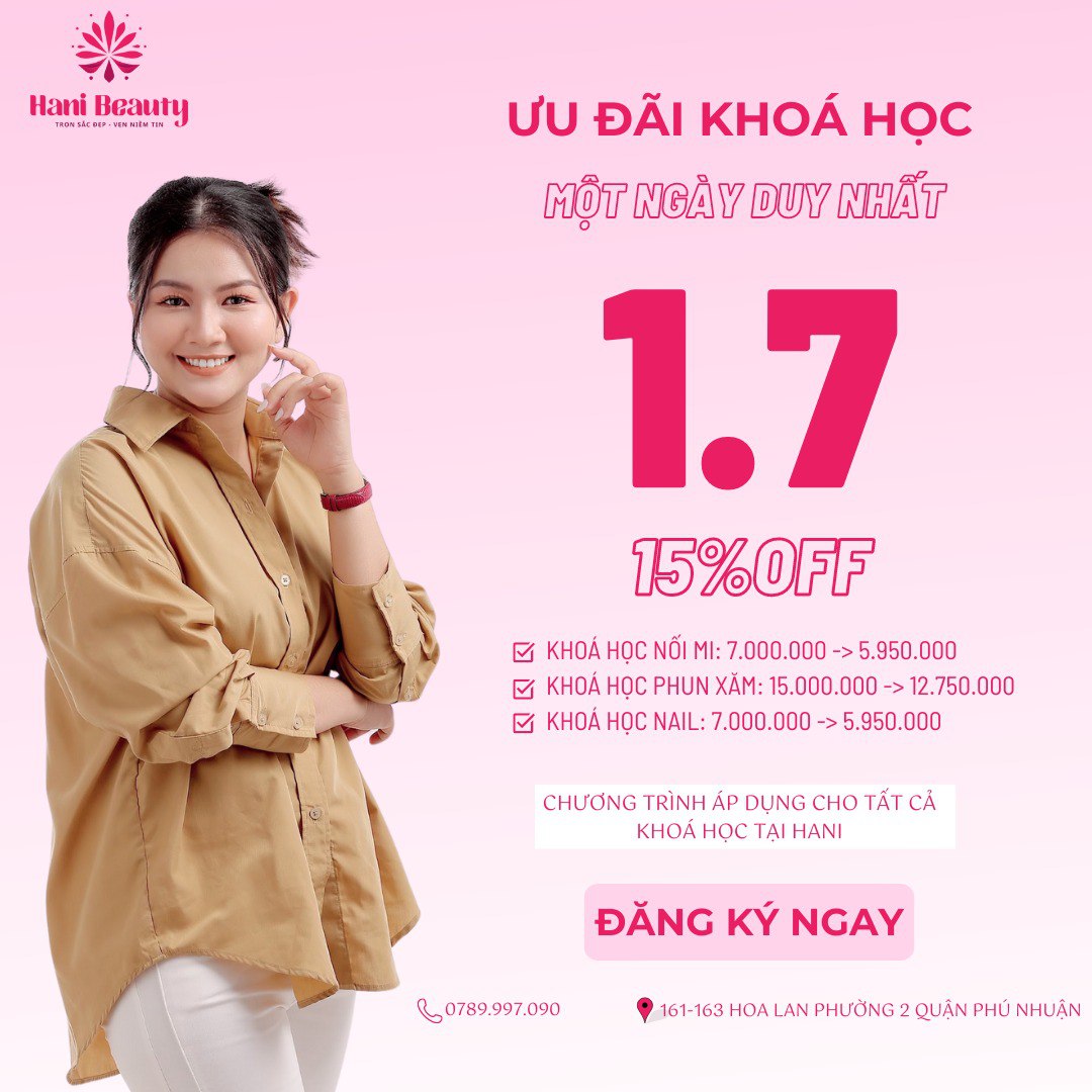 - Nếu bạn đang tìm kiếm một cơ hội để trở thành chuyên viên trong lĩnh vực này, Hani Academy là địa chỉ đáng tin cậy để bạn học hỏi và phát triển kỹ năng. Tại đây, bạn sẽ được đào tạo bởi các chuyên gia giàu kinh nghiệm, cung cấp kiến thức chuyên sâu và thực hành thực tế để nắm vững kỹ thuật nối mi Volume cũng như nhiều phương pháp làm đẹp khác.
