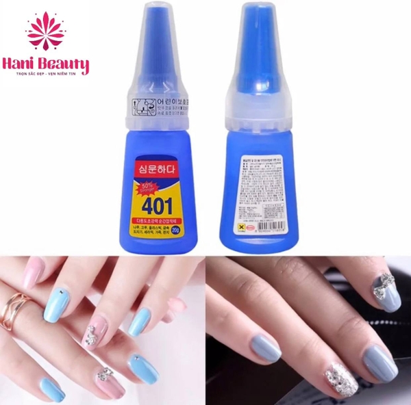 Keo 401 gắn đá đính móng là loại keo chuyên dụng để gắn các viên đá, hạt cườm hoặc các phụ kiện trang trí khác lên bề mặt móng. Đặc điểm nổi bật của keo 401 là độ bám dính cao và khả năng khô nhanh, giúp đảm bảo các phụ kiện được gắn chắc chắn và không bị rơi ra trong quá trình sử dụng hàng ngày. Cách sử dụng keo 401 rất đơn giản: chỉ cần nhỏ một lượng nhỏ keo lên vị trí cần gắn đá, sau đó đặt viên đá lên và giữ chặt trong vài giây để đảm bảo độ kết dính tốt nhất. Link mua sản phẩm tại đây.